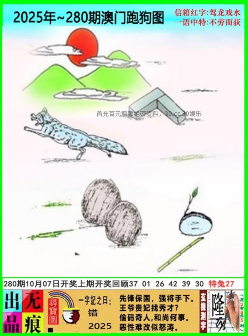 280期:不中两合【01合☠12合】开:鼠42准 |
